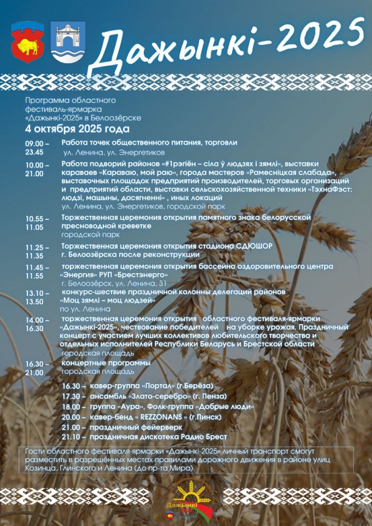 Программа областного фестиваля-ярмарки тружеников села «Дожинки – 2025» в Белоозерске