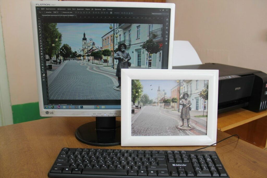 – Мая задача складаецца ў тым, каб з аднаго фотаздымка зрабіць два – верхні і ніжні слаі пано, — паведамляе падрабязнасці Вольга. – На адным будзе адна частка карціны, на другім – другая. Далей на кампьютары трэба іх накласці так, каб атрымаўся 3D малюнак. Ажыўляе пано мастак. Яна робіць некаторыя штрыхі, і вось краявід нібы сапраўдны. Здаецца, што вось-вось павее ветрык, выгляне сонейка, а між дамоў прамільгне фігура знаёмага.