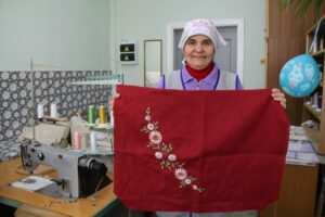 «…Першая прадукцыя арцелі была ўпрыгожана ручной мастацкай вышыўкай у тэхніках «крыж», «падліковая роўнядзь», «свабодная роўнядзь», машыннай вышыўкай «тамбур» і іншымі. Старажытнае майстэрства не забыта і ў нашыя дні.