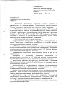 1.      Настоящим Положением определяет порядок создания и деятельности в УП «Пинская фабрика художественных изделий «Крынща Палесся» комиссии по противодействию коррупции (далее — комиссия).