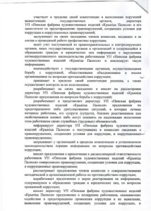 разрабатывает на своих заседаниях и вносит на рассмотрение директора УП «Пинская фабрика художественных изделий «Крынща Палесся» предложения по вопросам борьбы с коррупцией;