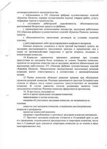 14. Комиссия правомочна принимать решения при условии присутствия на заседании более половины ее членов. Решение комиссии, принятое по вопросам повестки дня ее заседания, является обязательным для выполнения работниками УП «Пинская фабрика художественных изделий «Крынща Палесся». Невыполнение (ненадлежащее выполнение) решения комиссии влечет ответственность в соответствии с законодательными актами.