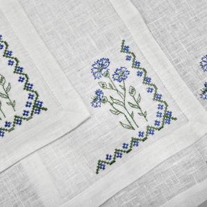 Комлект чайный по специальному заказу с нанесением вышивки. Комплект чайный (столешница+6 салфеток) арт. 21с32 рис. 300-20. Дорожка 65*65, салфетки 6(30*30)